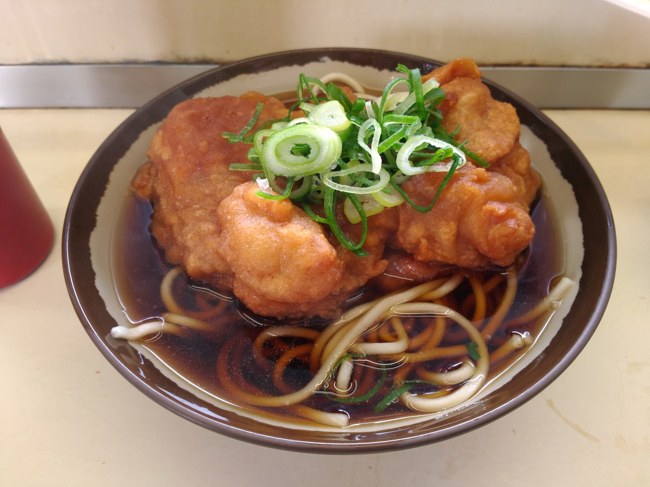 唐揚げを上げる流れと聞いて我孫子駅弥生軒の唐揚げそば。